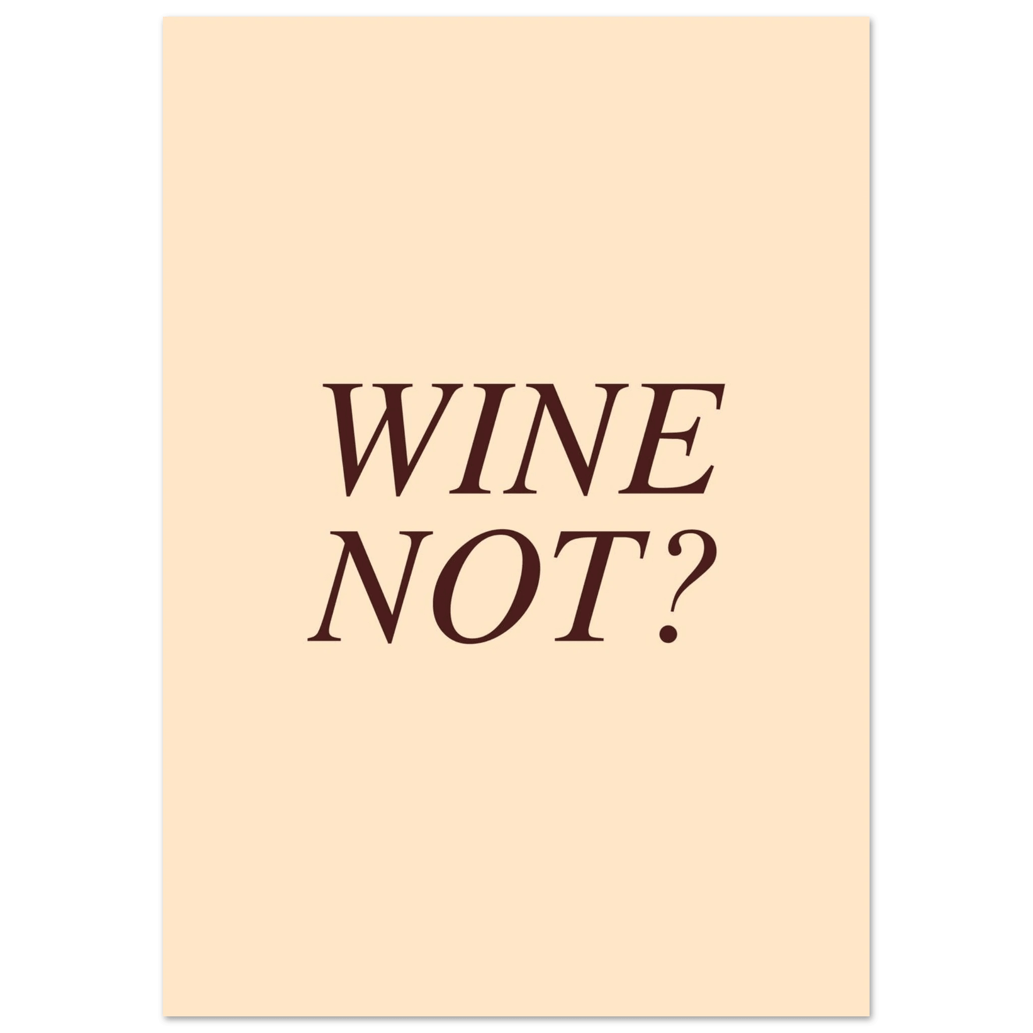 An entertaining and stylish poster that combines humor with a love of wine. With its playful pun 'Wine Not', this design makes a perfect statement for wine lovers and connoisseurs of life.